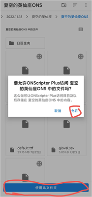 3、找到已解压的游戏文件夹,点击使用此文件夹,然后选择允许。